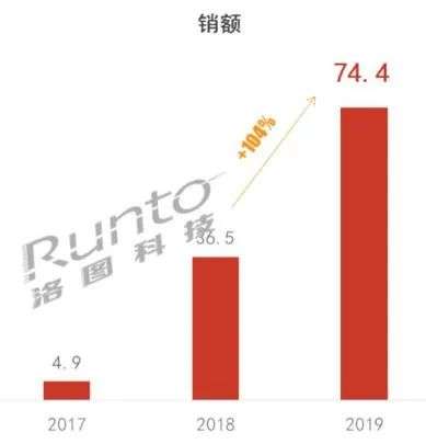 近几年,中国智能音箱市场的增长趋势和国际上基本一致。据《中国智能音箱零售市场月度追踪》数据,2017-2019年,中国智能音箱产业出于迅猛发展的状态,2019年,中国智能音箱市场销额为74.4亿元,同比增长104%。