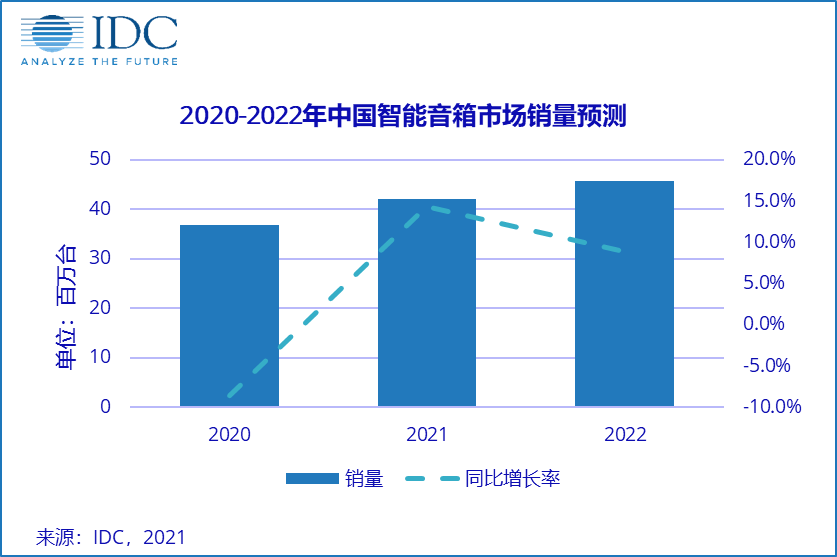 当拼价格的阶段过去后,市场必然会经历一段沉淀。IDC相信,经过2020年的调整,2021年中国智能音箱市场将进入更加健康常态的发展轨道。据预测,2021年中国智能音箱市场销量将超过4,200万台,同比增长14%。
