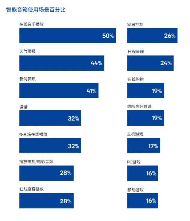 《2020高通音频产品使用现状调查报告》显示,在全球范围内,“在线音乐播放”是智能音箱现阶段最主要的用途。