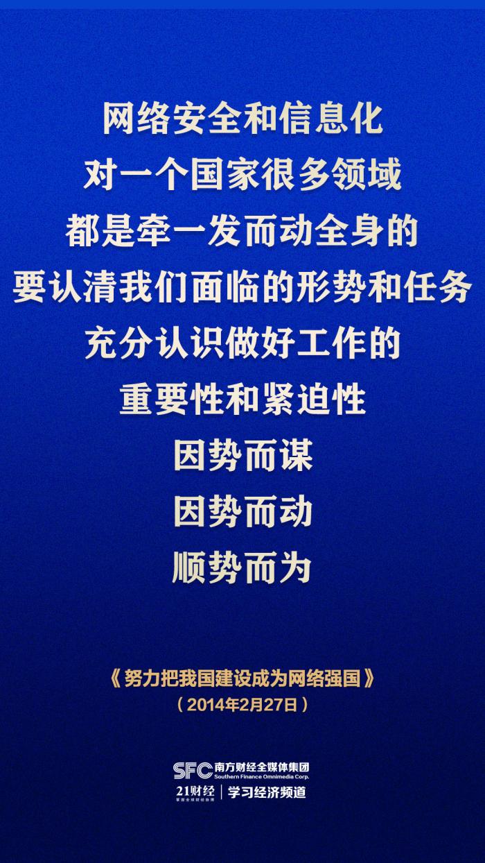 党的十八大以来,以习近平同志为核心的党中央重视互联网、发展互联网、治理互联网,推动我国网信事业取得历史性成就,走出一条中国特色治网之道。习近平总书记围绕网络强国建设发表一系列重要论述,提出一系列新思想新观点新论断,为新时代网信事业发展提供了根本遵循。21财经客户端“学习经济”频道为您梳理其中的重要论述,一起学习。