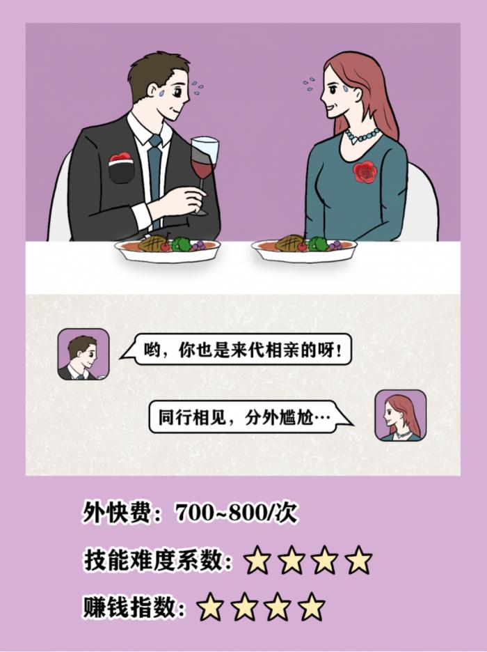 小F度过了难得清静的假期,并在付余款时从代相亲团队那里得知,当他们到达指定约见地后,发现女方也找了“替身”前来相亲。两位代相亲同行在饭桌前面面相觑:你也来代相亲啊!