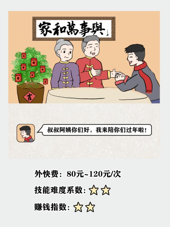 代喂猫恐怕是往年北上广深等大城市最火热的需求,随着许多人2021就地过年,这款赚钱方式可能含金量会下降。取而代之的有“代男友、代喝悦色颜茶、代陪父母过年”等更应景的好玩需求。