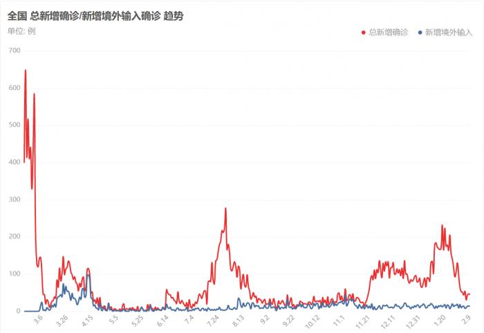 国家卫健委数据显示,2月9日0—24时,31个省(自治区、直辖市)和新疆生产建设兵团报告新增确诊病例14例,均为境外输入病例;无新增死亡病例;无新增疑似病例。同期,全国高风险地区降至6个,中风险地区16个。