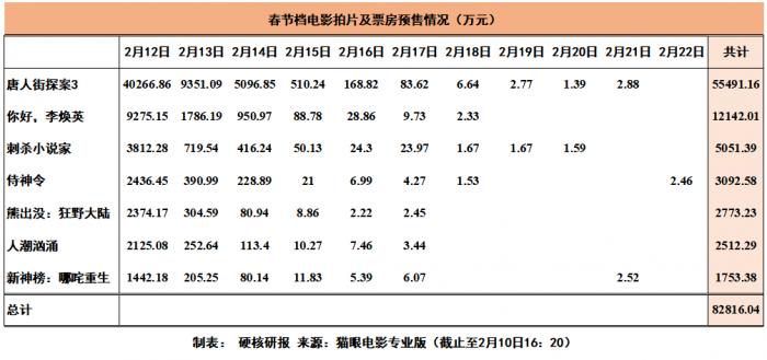 中金公司研究认为,近几年来,春节档票房头部集中现象明显,票房冠军通常全胜立场,而其他的几部影片非平既亏。如《唐探3》这次有望取得近半的票房。但这样一来,春节档超过一半的影片也会是亏损的。今年春节档七部影片,至少会有2部影片的最终票房或许不足5亿。