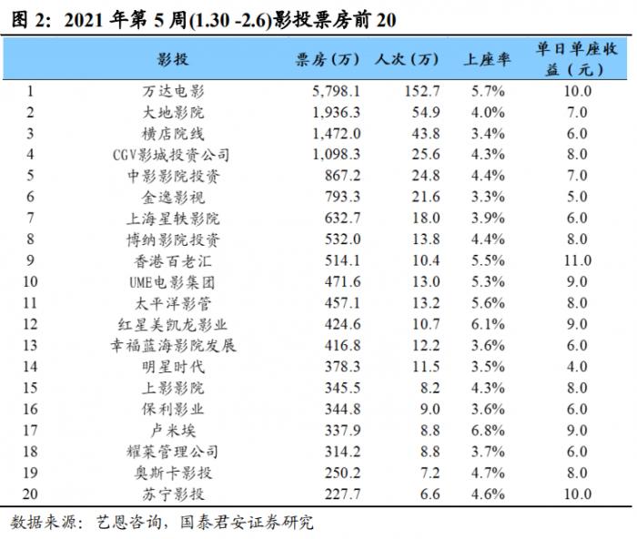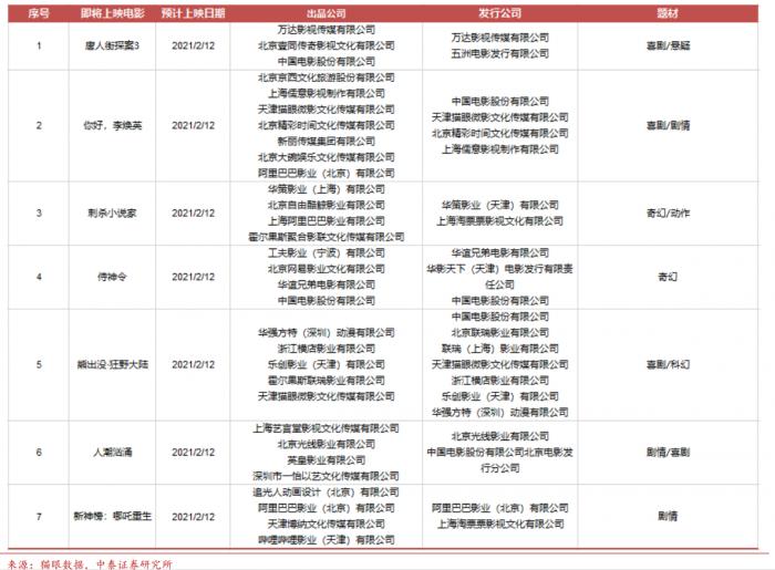在春节档成绩的刺激下,作为受疫情影响较大的板块,预计影视板块相关公司的业绩有望在低基数下通过春节档实现反弹。