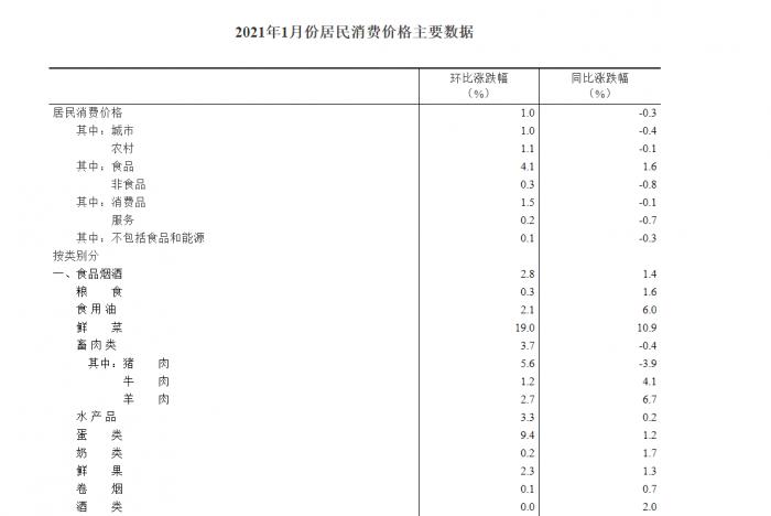 猪肉价格同比下降3.9%!1月份CPI和PPI环比上涨 同比一跌一涨 (附解读)