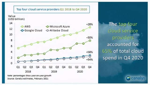 2020年全球遭遇疫情黑天鹅影响,以亚马逊、微软、谷歌为代表的科技巨头依旧实现业绩跟股价的双增长。在市值不断创新高背后,云计算成为推动他们业绩增长的重要动力。