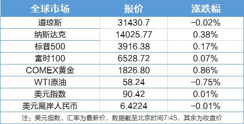 1、欧美股市涨跌互现;纳指、标普均创收盘新高,道指微跌;工业大麻股集体重挫;区块链板块大涨;芯片股普涨;美油期货跌近1%,止步八连涨。国际金价跌近1%,失守1830美元关口。