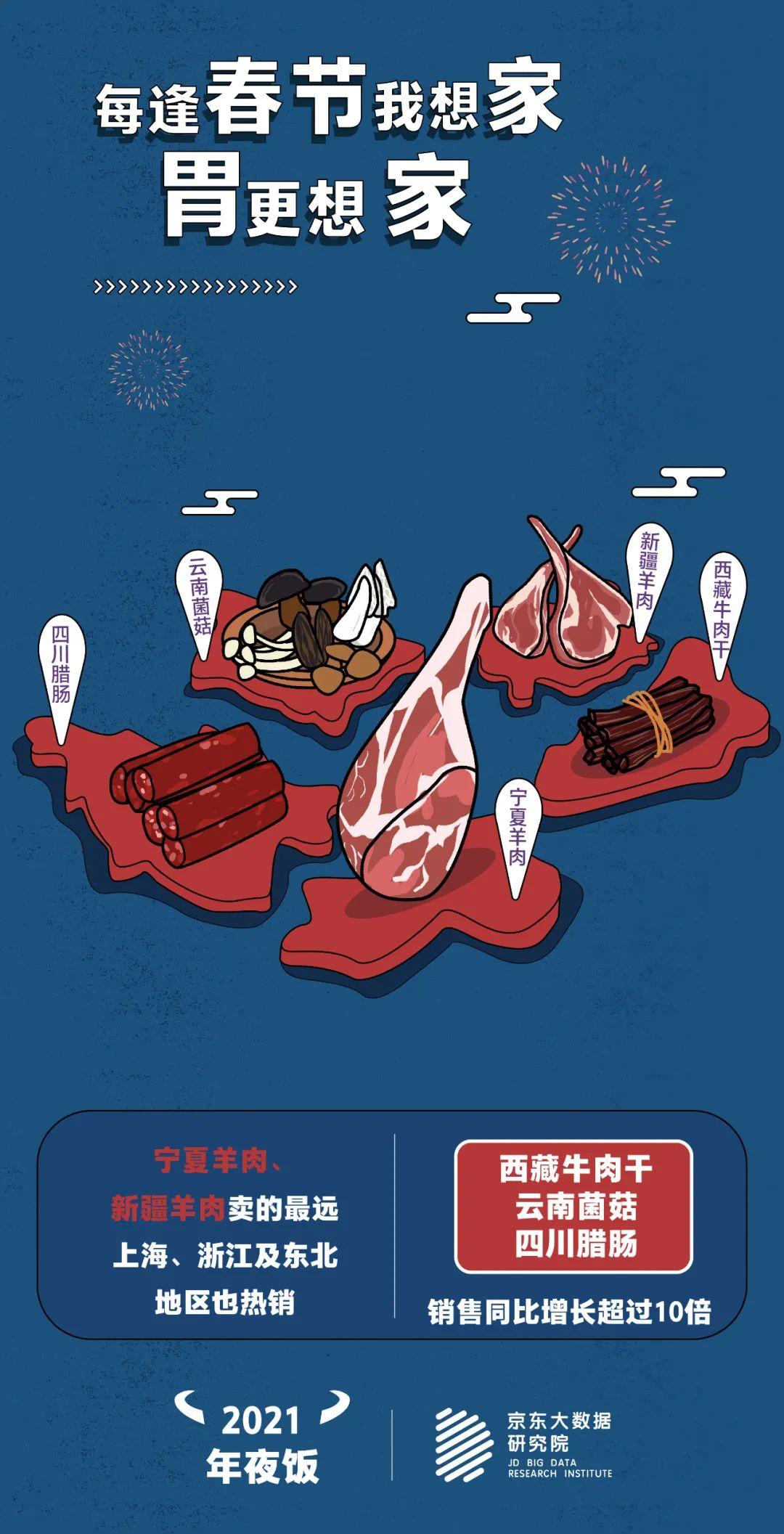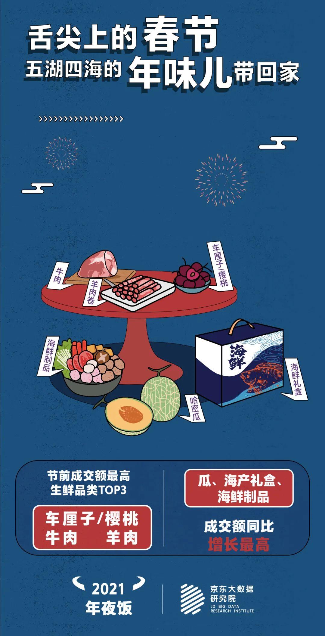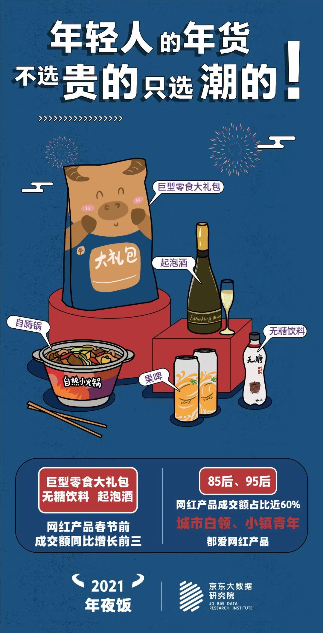 年夜饭大礼包、吉祥菜、网红美食、家乡特产、生鲜坚果、美酒佳酿......这个春节,“原年干饭人”们都贼会吃!“95后”钟情于老字号大礼包;象征美好寓意的吉祥菜销量纷纷成倍增长;海量“网红食品”获得都市白领和小镇青年齐追捧;各地“土味特产”畅销走俏;酒水依旧是节日热门选手,其中单单金酒在春节前的成交额增长就超过了9倍!