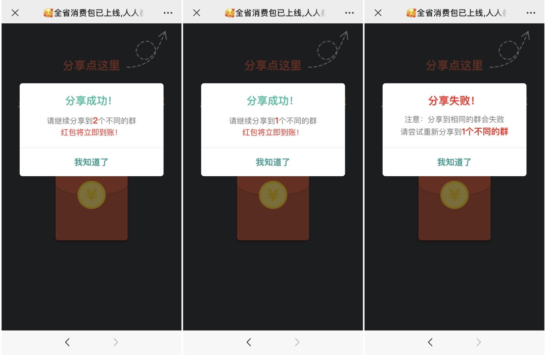 不法分子伪造页面内容,冒充官方,以热点事件为幌子,编造虚假“利好消息”,再以“大额红包”为诱饵,欺骗和诱导用户进行点击。