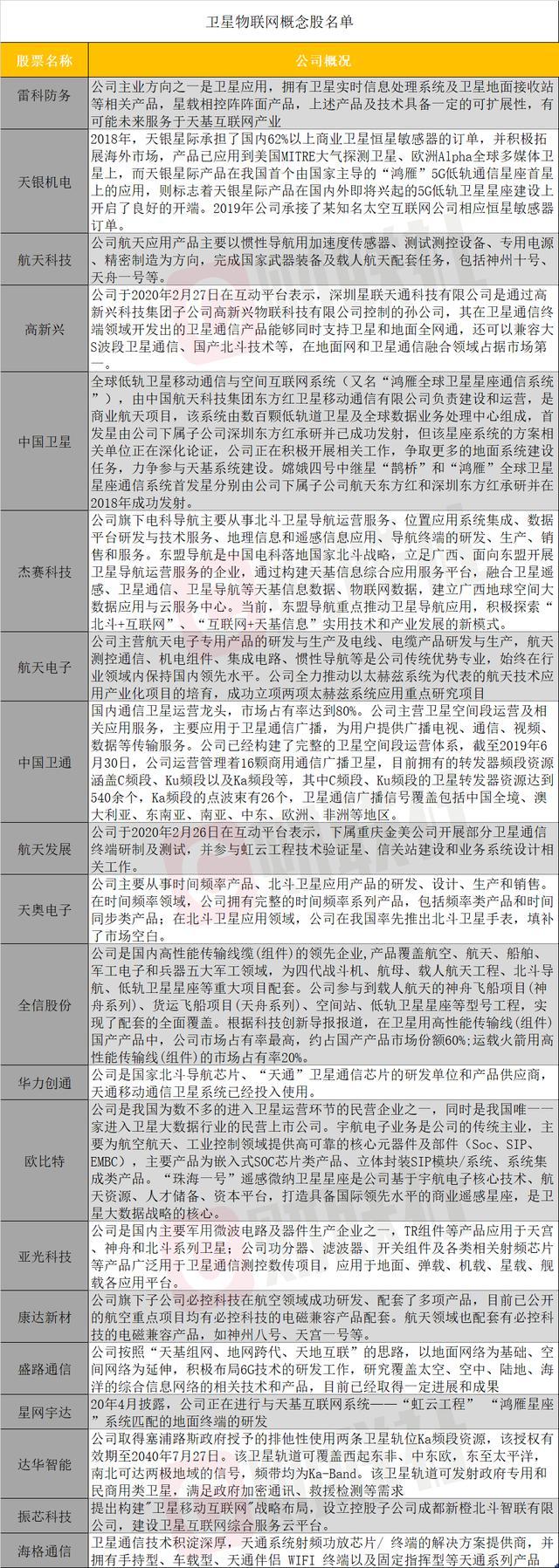 最后财联社为投资者梳理了卫星互联网概念股名单,具体如下: