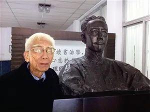 蔡鸿生教授生前与恩师陈寅恪先生雕像合影。他曾著有《仰望陈寅恪》。