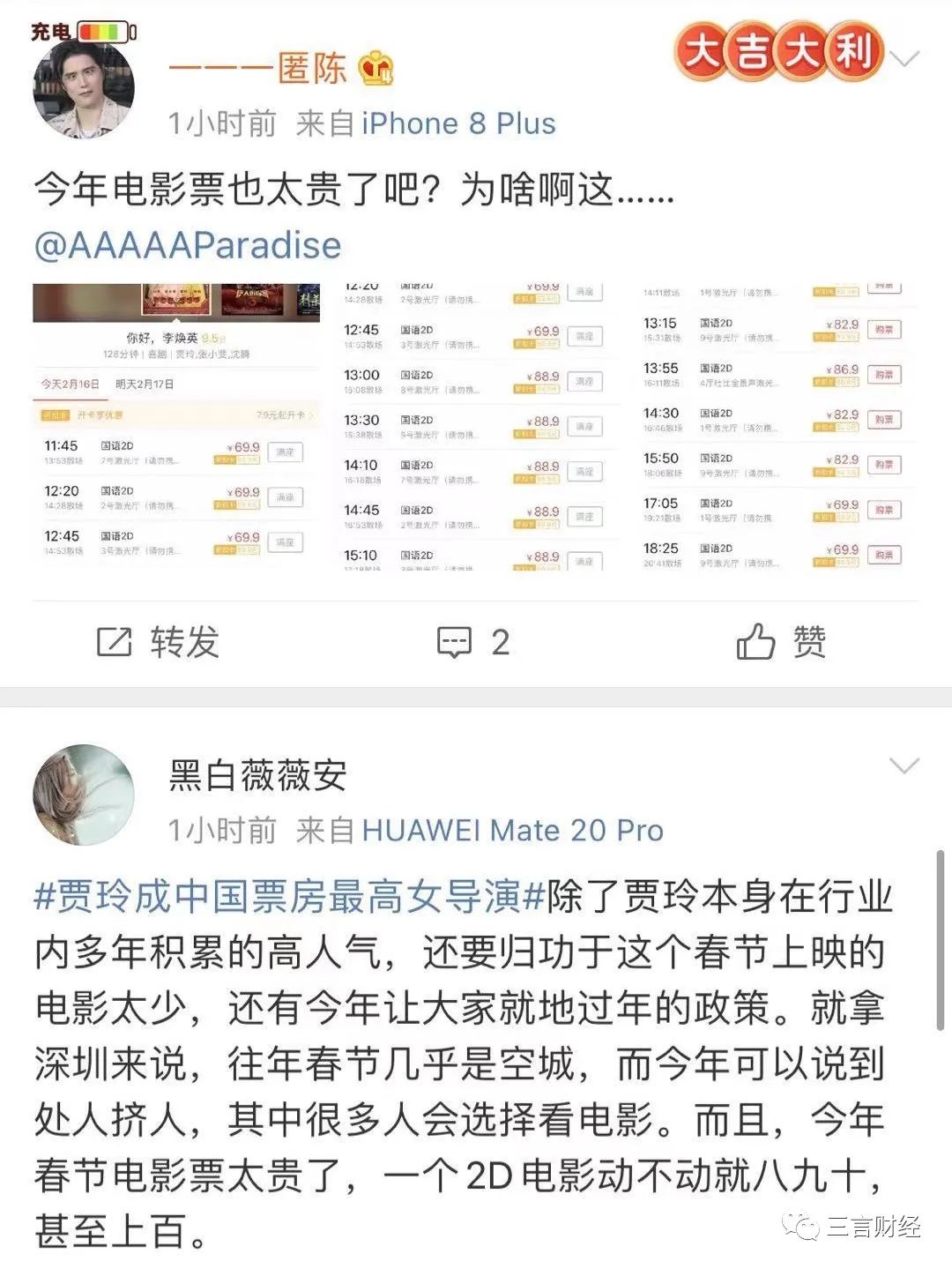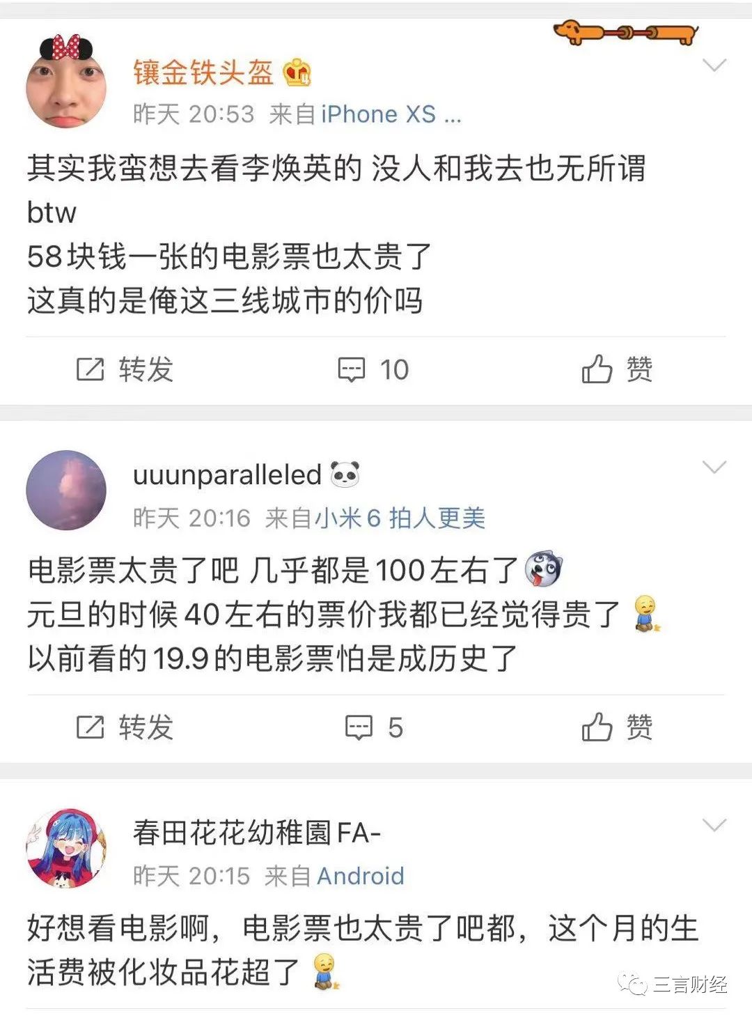很多网友在微博上纷纷吐槽今年电影票价都很高;