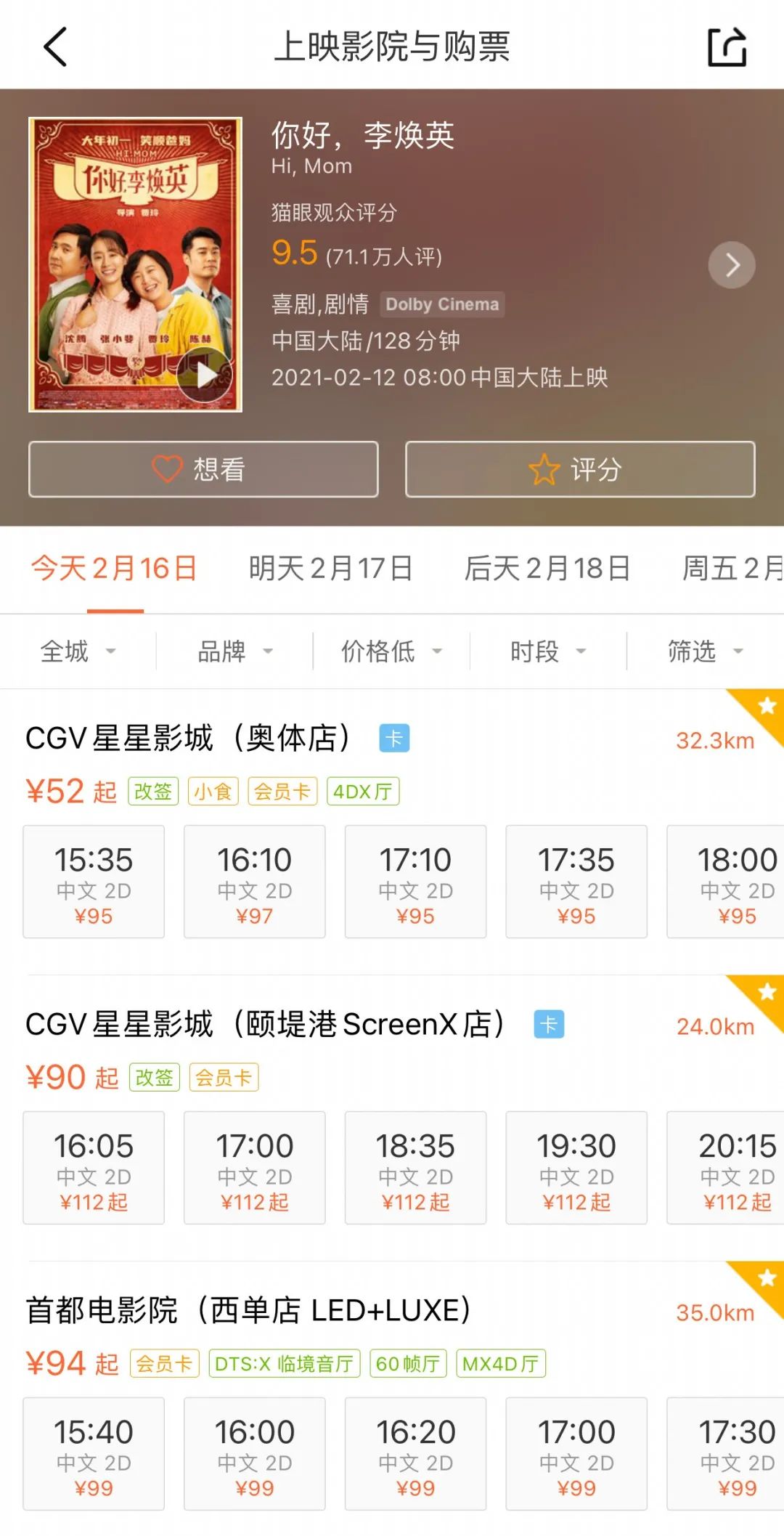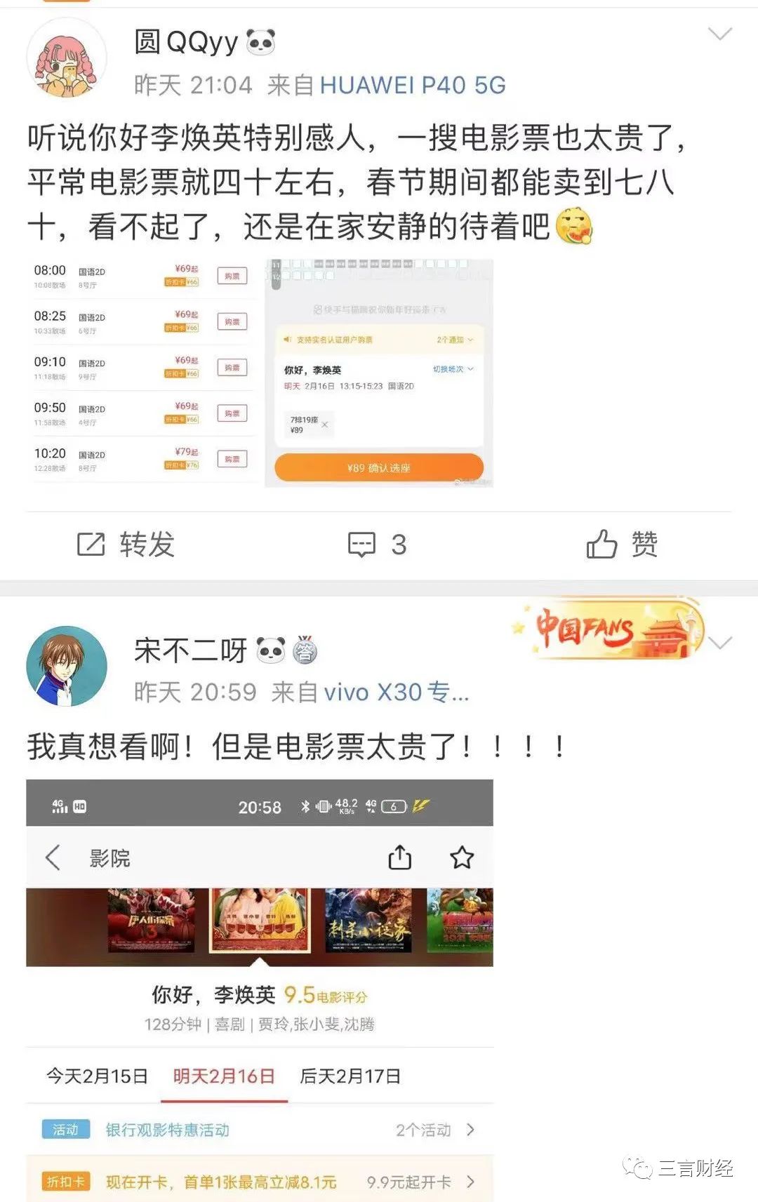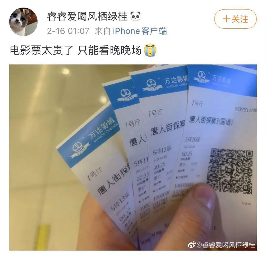 有网友还表示因为实在看不起,只能看凌晨0点的晚场电影。