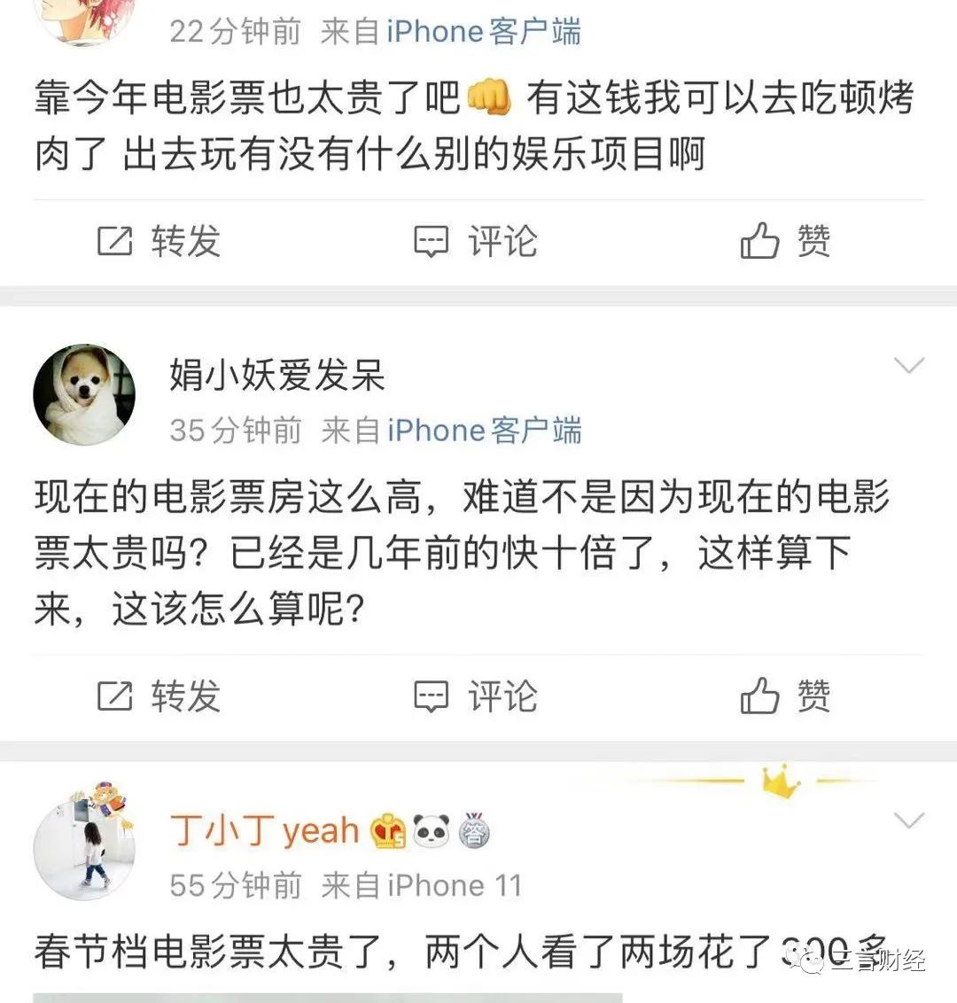 由于2020年春节期间基本上没人去电影院看电影,时隔一年后人们再进影院时对价格可能相对更敏感,这也导致今年吐槽电影票价的消费者越来越多。