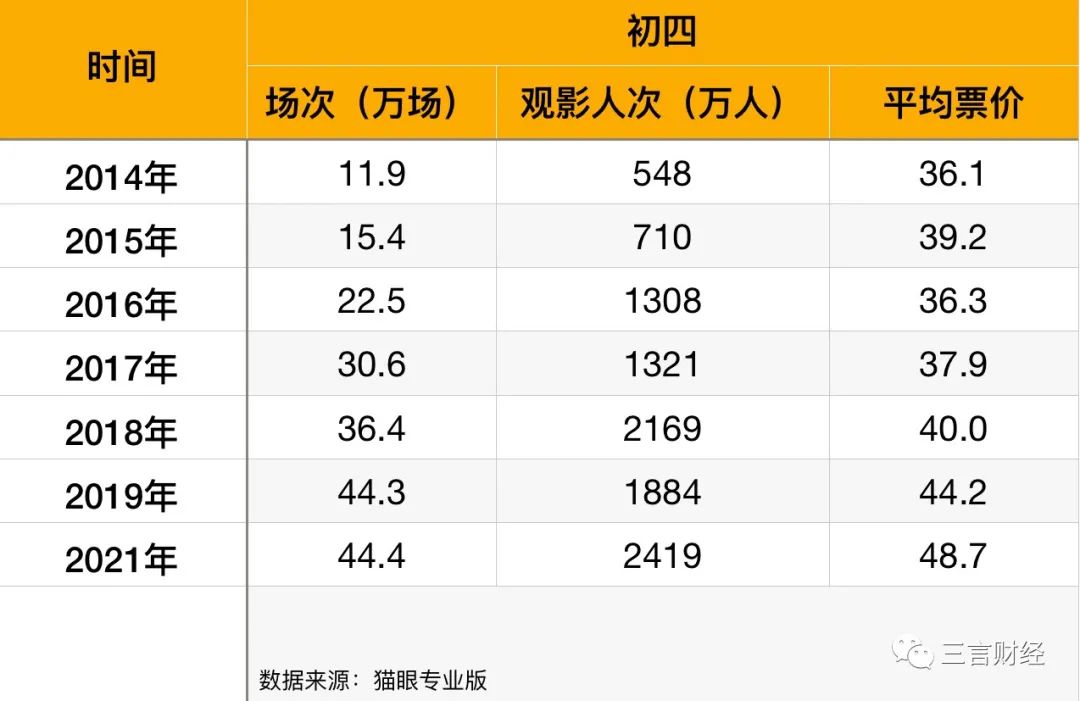 因此,三言财经又对比了2014年以来除夕至初四的电影票价数据。