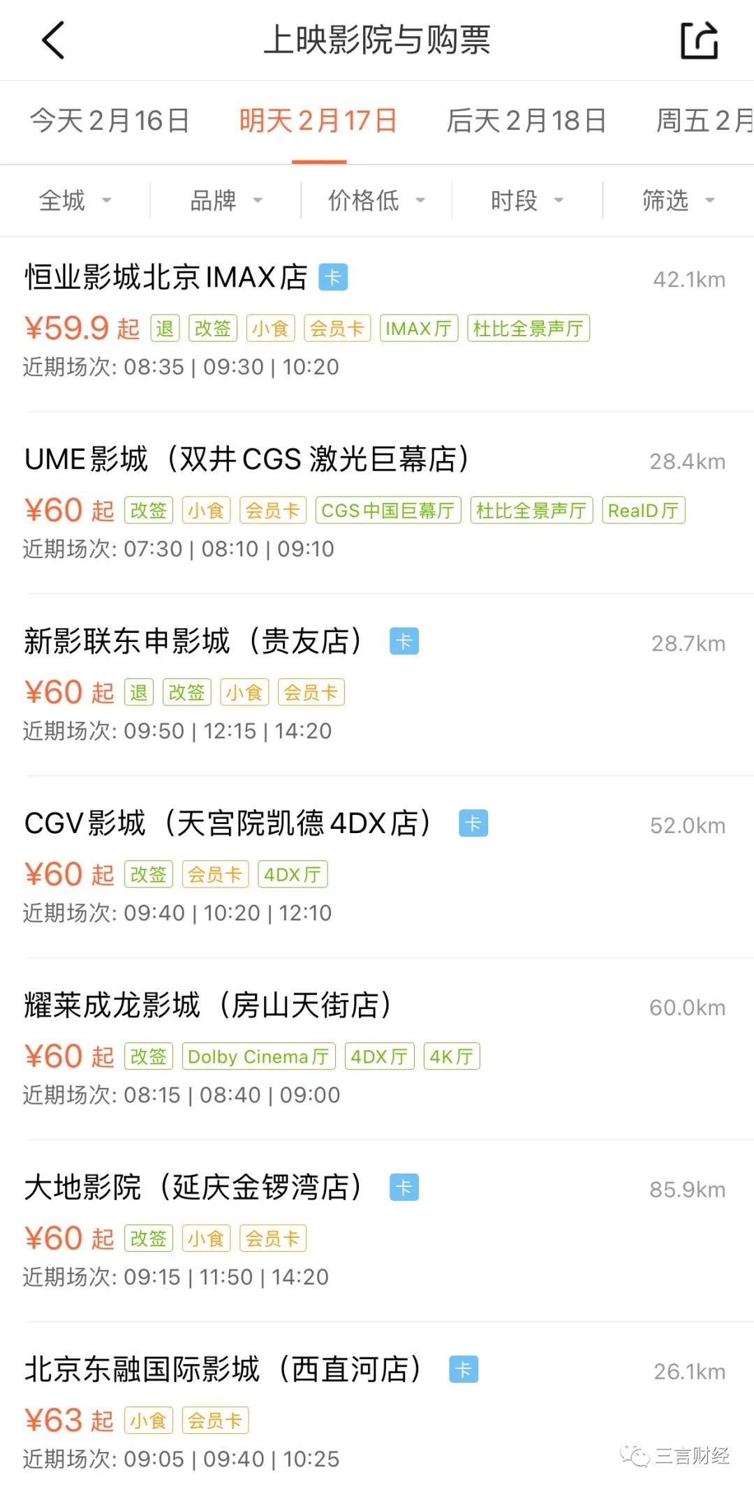 但在春节期间,大部分消费者都在家过年,和家人看电影可以说是过年期间的一种“刚需”,这也就变相推高电影票价。