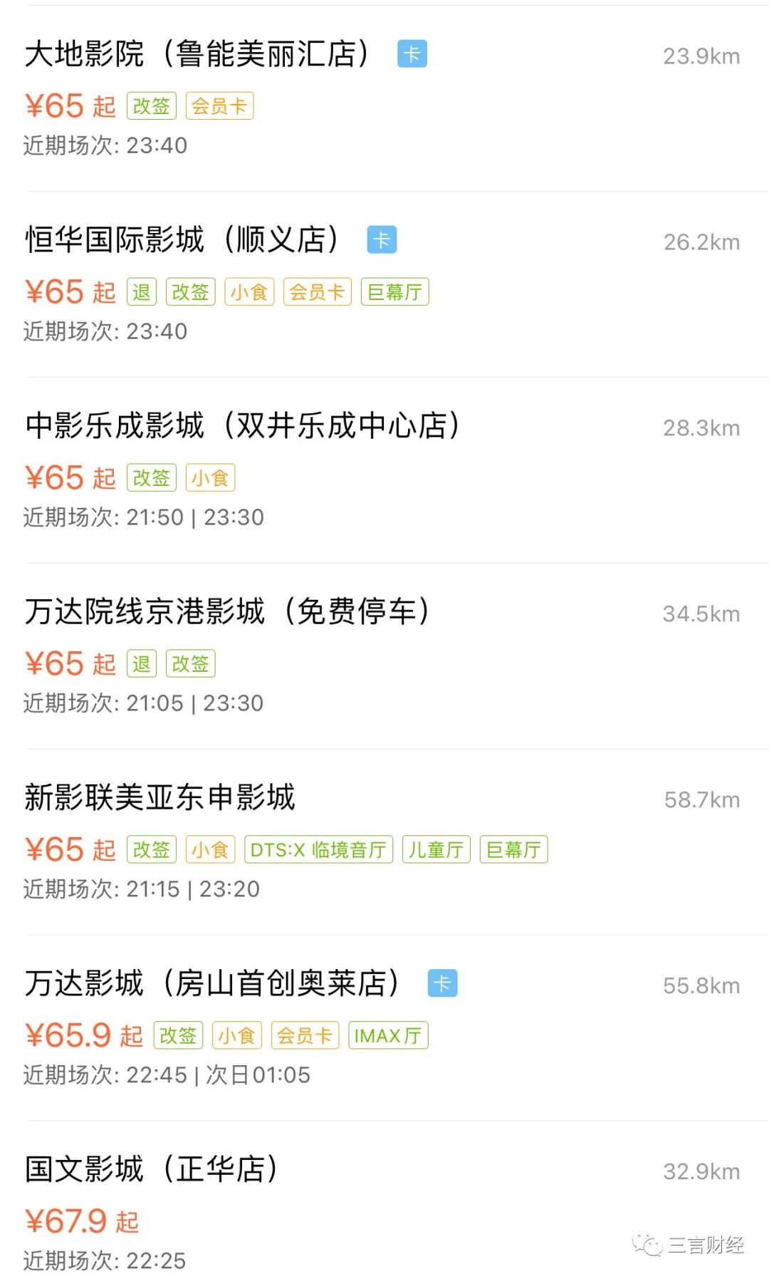 而且不仅北京,很多三、四线城市热门电影票价也在60、70元左右。