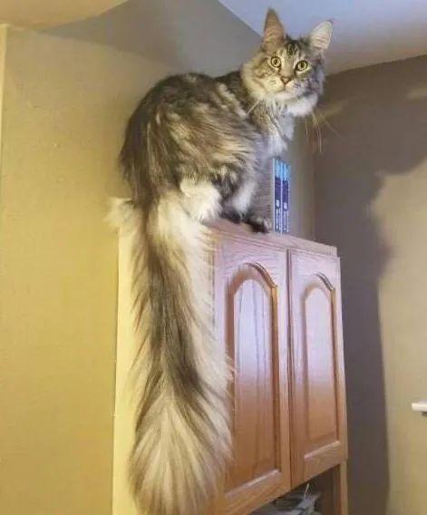 既然有最小的猫咪,那么当然世界上也有最大的猫咪,那就是缅因猫,绝对的猫界巨人。缅因猫体格强壮,被毛厚密,长像与西伯利亚森林猫相似,在猫类中亦属大体型的品种。缅因猫的是家猫中体型最大的猫,平均体重可达15~25磅,体长可达到120cm左右,身高也比其他的猫要高一些。它们肌肉发达,体格健硕,脚掌大而圆,是捕猎的好手。