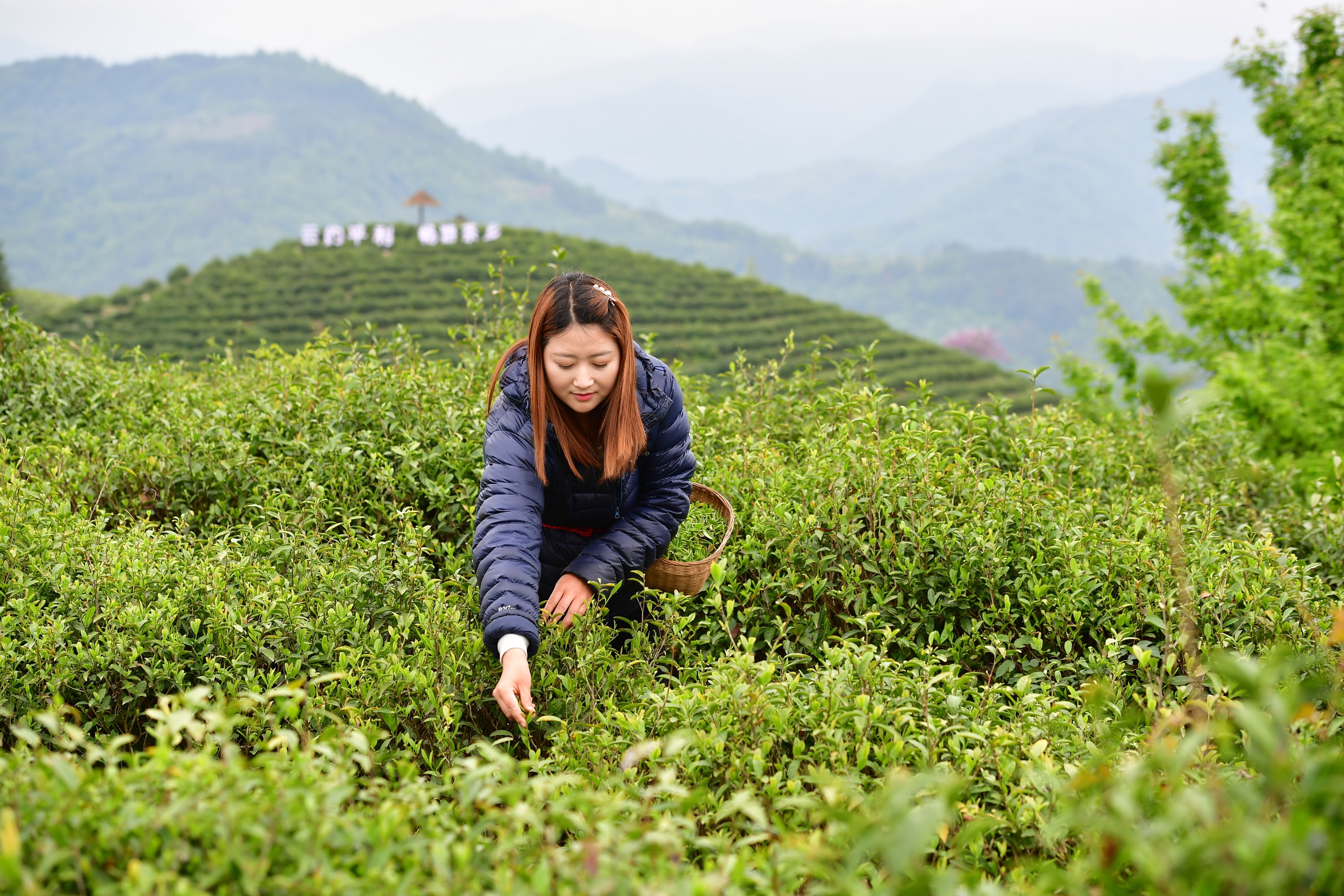 远眺,雾霭轻抱柔软山脊;近瞧,齐腰茶树苍翠欲滴。空山新雨,茶香醉人。