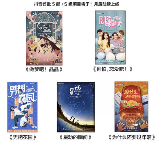 在今年1月发布的《2020抖音娱乐白皮书》中,抖音公布了第一批微短剧片单共5部作品。而今年全年,抖音将产出30+部S级精品微短剧,合作方囊括真乐道文化、华谊创星、五元文化、唐人影视、哇唧唧哇等行业头部影视、经纪公司,就微短剧内容来说可谓顶配。