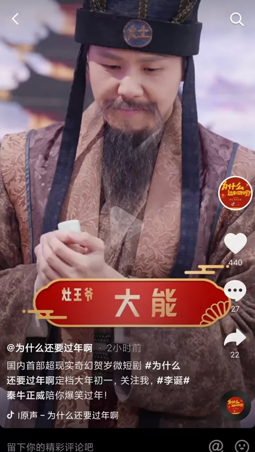 在《为什么还要过年啊?!》中,抖音延续了这一思路。这里结合剧集内容介绍达人大能的表现,包括达人与明星的对手戏,观众表示眼熟、欣喜等评价。