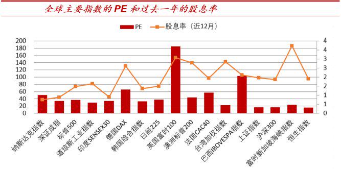截止目前,恒生指数的市盈率(TTM)只有约15.8倍,相比道琼斯指数、纳斯达克指数和标普500指数的市盈率(TTM)分别约为30.5倍、56倍和40倍。很明显,港股的估值在全球主要金融市场中处于较低水平。