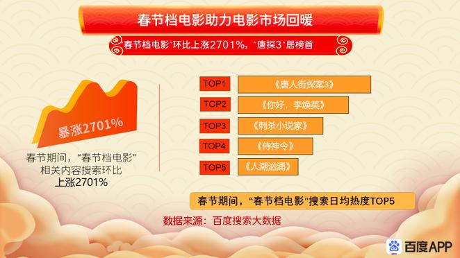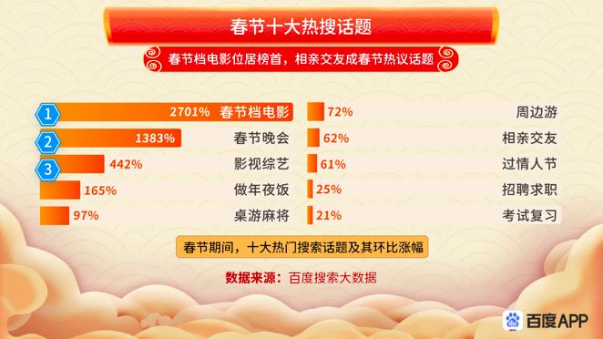 百度牛年春节搜索大数据:春节档电影搜索环比上涨27倍,居十大热搜话题之首