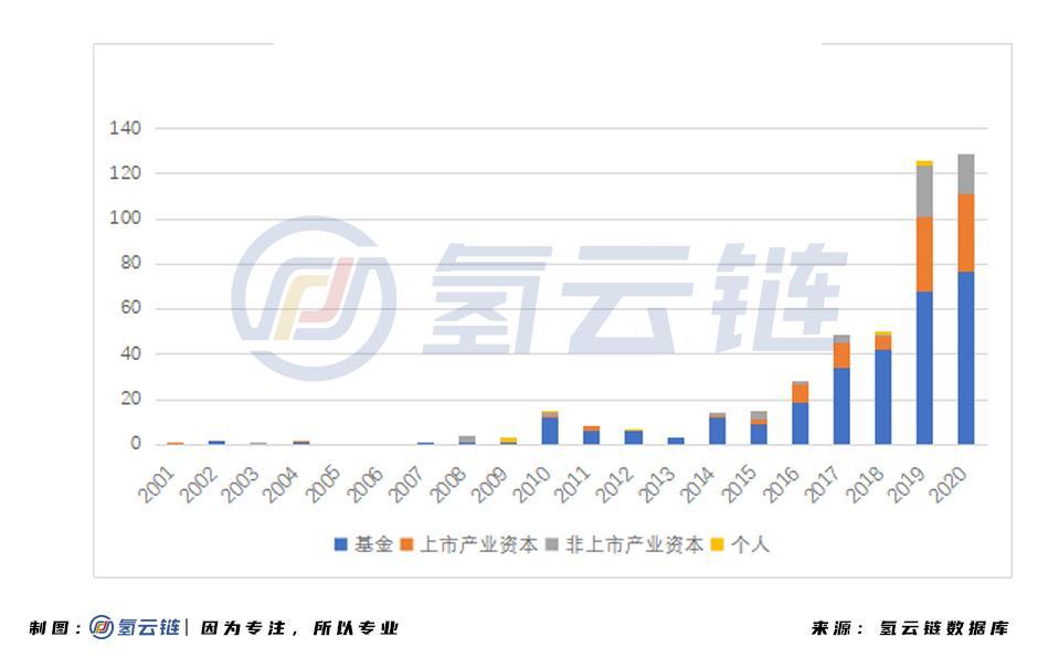 图3 2001-2020年氢能行业投资机构类型情况(截止2021年1月27日)