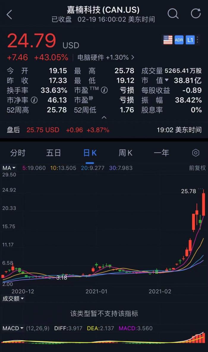 盘面上,区块链板块大涨,嘉楠科技涨超40%,第九城市涨逾30%,Riot Blockchain涨近15%。