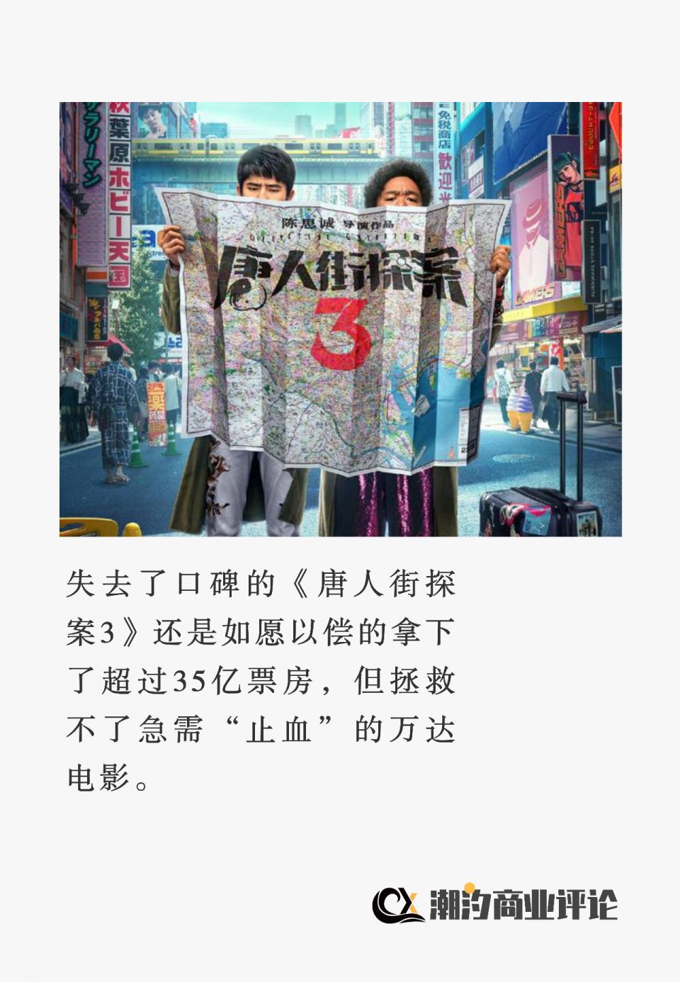 失去了口碑的《唐人街探案3》还是如愿以偿的拿下了超过35亿票房,但拯救不了急需“止血”的万达电影。