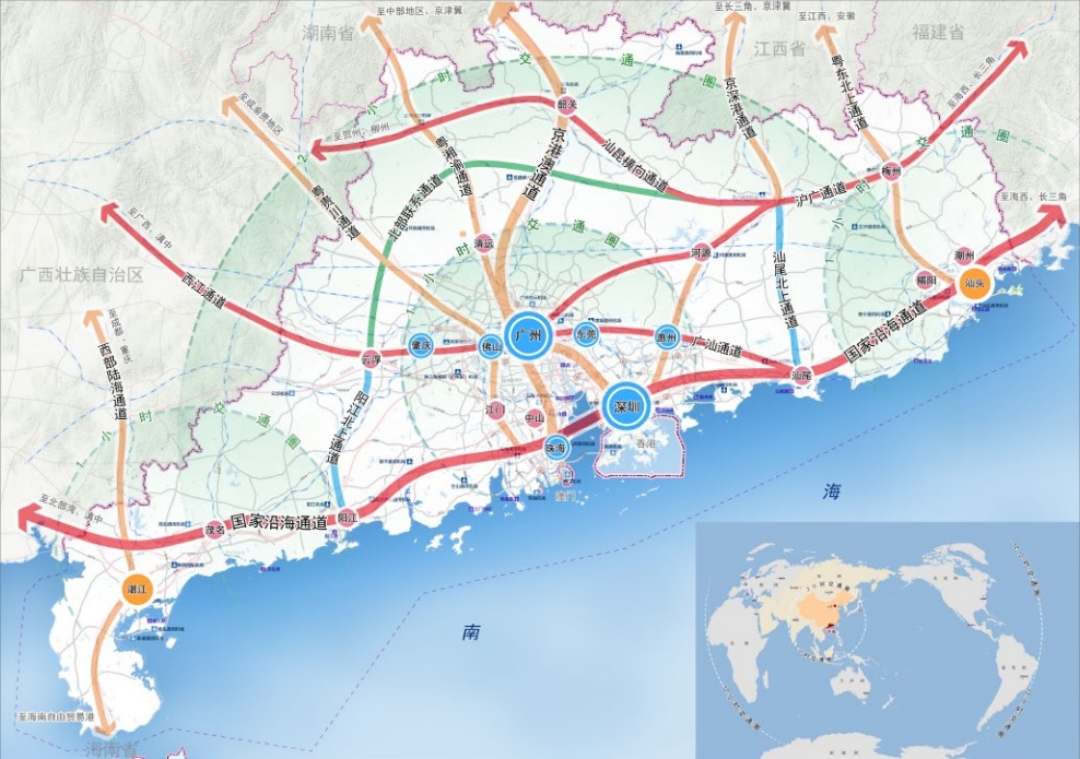 规划提出以超大特大城市以及辐射带动功能强的大城市为中心,以1小时通勤圈为基本范围,建设广州都市圈、深圳都市圈、珠江口西岸都市圈、汕潮揭都市圈、湛茂都市圈等5个现代化都市圈。