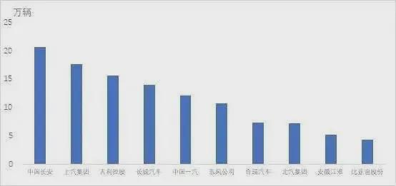 据中国汽车工业协会统计分析,2021年1月,中国品牌汽车销量排名前十家企业依次是:长安、上汽、吉利、长城、一汽、东风、奇瑞、北汽、江淮和比亚迪。与上年同期相比,十家企业均呈较快增长,1月,上述十家企业共销售114.52万辆,占中国品牌汽车销售总量的87.37%。