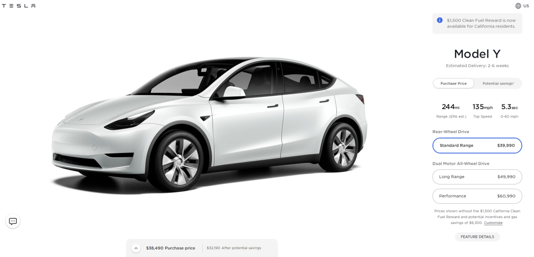 Model 3和Y基础版降价,Model 3标准续航升级版起售价调整为3.699万美元,降价1000美元,Model Y标准续航版,其售价调整为3.999万美元,降价2000美元。同时高性能版涨价,Model 3 Performance高性能版起售价上调1000美元,Model Y Performance高性能版起售价也同样上调1000美元。国内版本价格目前没有变动。