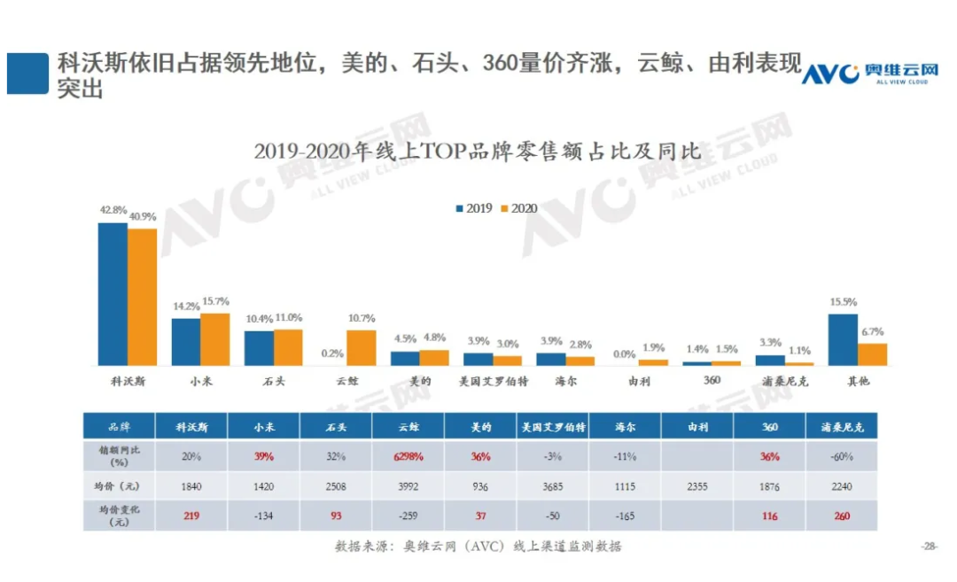 但值得注意的是,在两年时间中,科沃斯、小米、石头的零售额占比并无较大变化,增长有限,但是依托于KOL带货的新秀云鲸异军突起,从籍籍无名一举在2020年抢占走超10%的市场份额。