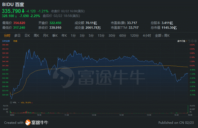百度周一开盘后曾逆市涨超4%又创盘中新高,但尾盘转跌,收跌逾1%,跌离上周五所创的收盘纪录高位。盘后再跌超2%。
