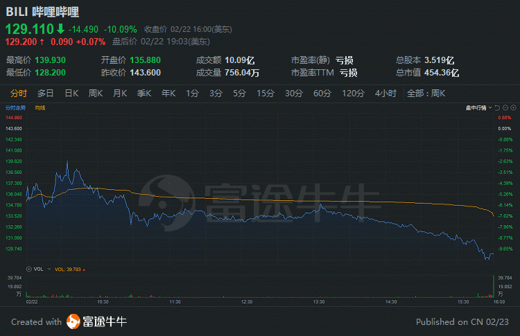 B站周一低开低走,跌超10%。公司将在本周三盘后公布财报。