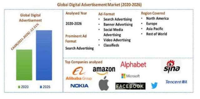 据UnivDatos,数字广告已成为出版商、广告技术供应商和广告代理公司不可缺少的工具,预计数字广告的年收入将继续大幅增长,到2020年总支出将达到3000亿美元。