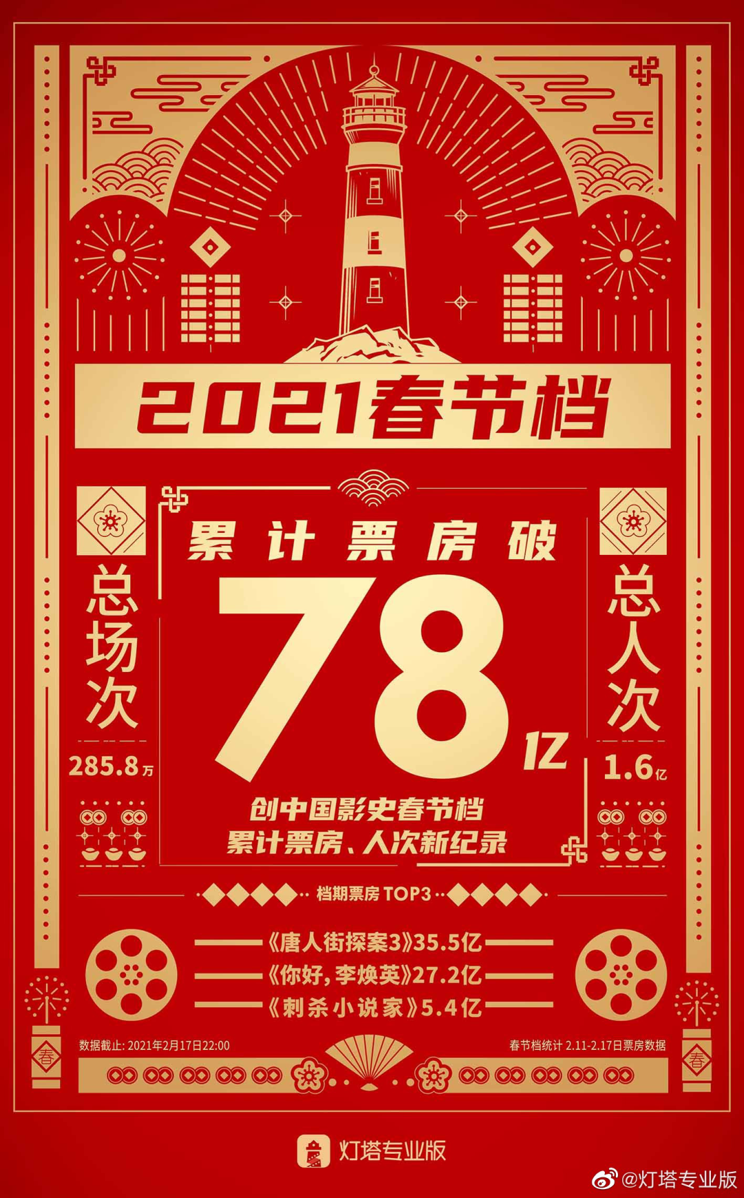 牛年新春伊始,受疫情限制,就地过年成为主流。而本就火爆的春节档,今年更是迎来了疯狂的报复性观影,票房累计突破78亿,总观影人次1.6亿,创中国影史春节档累计票房、人次新纪录。