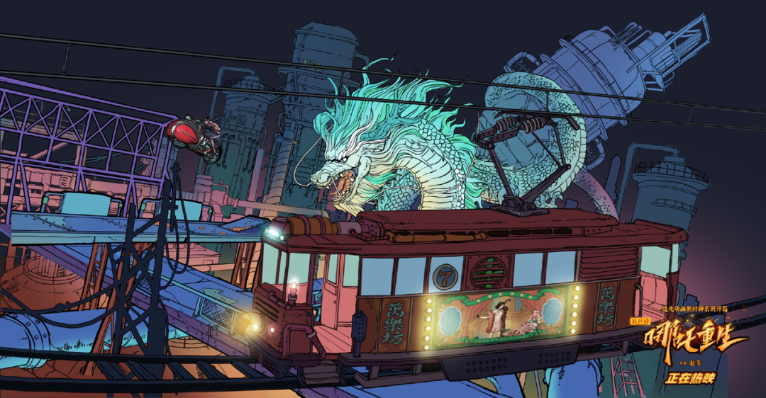 作为追光动画“封神宇宙”的先行官,《新神榜:哪吒重生》在细节上的刻画不可谓不功夫。单主角李云祥的摩托车便修改了近三十版,铠甲取材自魏晋至唐朝都十分主流经典款式——明光铠。片中的主要场景东海市,是以二三十年代老上海为参考进行设计的,并在其中融入了废土朋克、工业朋克、赛博朋克,加上钢铁机械感,带给观众全新的东方朋克的视觉冲击,视效和人物设计都无可挑剔。
