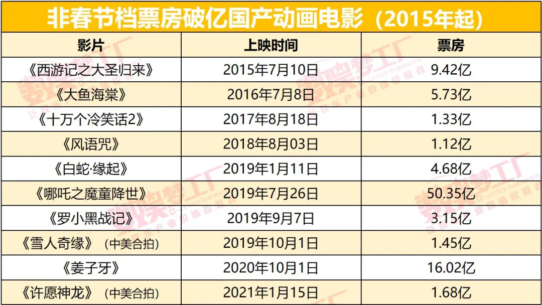 国产动画电影自《西游之大圣归来》的爆火后,逐渐令资本市场注意到动画电影这块尚待开发的新蓝海。然而距《大圣归来》上映已有6年,国产动画电影只有10部票房破亿。
