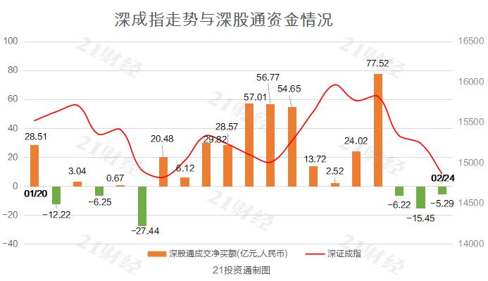 2月24日,A股延续调整,沪指失守3600点关口,跌幅近2%;深成指跌幅超过2%;创业板指跌幅超过3%,盘中一度失守3000点大关。两市合计成交超过1万亿元。