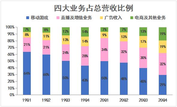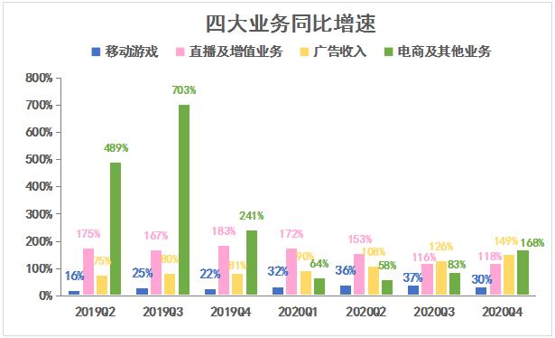 综上,直播业务的增长较为稳定,取代游戏业务成为公司的第一大业务;广告业务以及直播业务均实现增长,但电商业务的表现亮眼,增速更快,成长性佳。