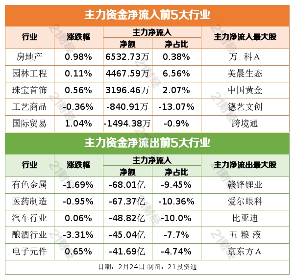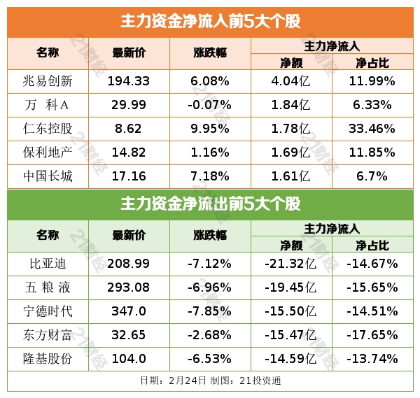 据21投资通(微信号ID:touzit21)智能监测,2月24日,北向资金净卖出6.73亿元,其中沪股通净卖出1.44亿元,深股通净卖出5.29亿元。