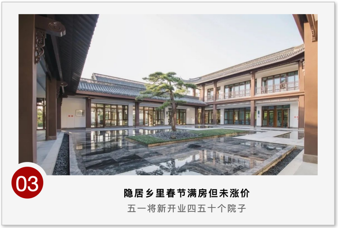 春节运营给陈长春带来的最大思考是,新冠疫情正在唤醒更多中国中产人群消费乡村的需求,让更多中产人群意识到中国独院型民宿体验不亚于国外度假俱乐部。陈长春还表示,城市周边乡村度假并不是低频消费,而是多频,“周末和节假日全部满房就可过盈亏平衡点,而如果暑期做夏令营,平日做企业团建、会议活动很快就能盈利。”此外,陈长春断定未来5年之内,头部民宿品牌的住宿收益仅占总营收的40%,原因是“乡村民宿是乡村生活方式场景服务商,它在乡村给你提供的是有现代感的生活方式,重点是场景,其次才是住宿服务,在乡村的消费层次越来越丰富,包括吃玩娱购等。”陈长春表示,隐居乡里五一还将新增开业四五十院子,未来还将进一步加快拓展步伐。