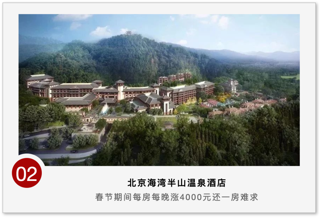 “延庆Club Med Joyview创记录周营收达750万元”复星旅文副总裁、联席CFO徐秉璸告诉新旅界,自2月7日到22日接近爆满,有10天是100%入住率,2月10-17日整周客单价均价在3900元附近。“密云海湾半山温泉酒店一晚上房价接近6000多元,还一房难求。”6人游创始人贾建强告诉新旅界,自7月以来该酒店实施全员营销,彼时豪华双床房仅2000元,至春节每间客房上涨逾4000元,房价近6000元。“隐居乡里北京地区的院子从大年二十九到正月初八,我们的院子全部满房。”隐居乡里创始人陈长春告诉新旅界,而在一个月前北京地区春节的院子就已预定完。