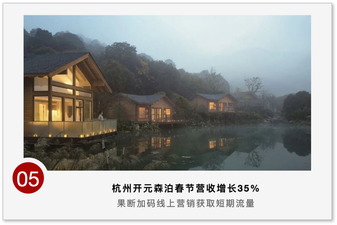 杭州开元森泊度假乐园春节营收比开元森泊旅游投资公司总经理叶建平1月底预想的“能达到2019年春节50%就算很好”要强得多,最终营收比2019年增长35%,入住率达70%。