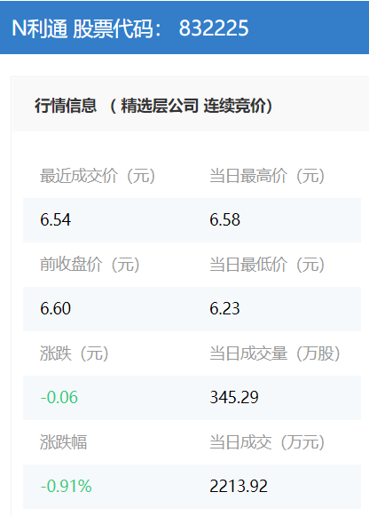 利通液压的保荐机构为民生证券,公司精选层的发行价为6.60元/股。