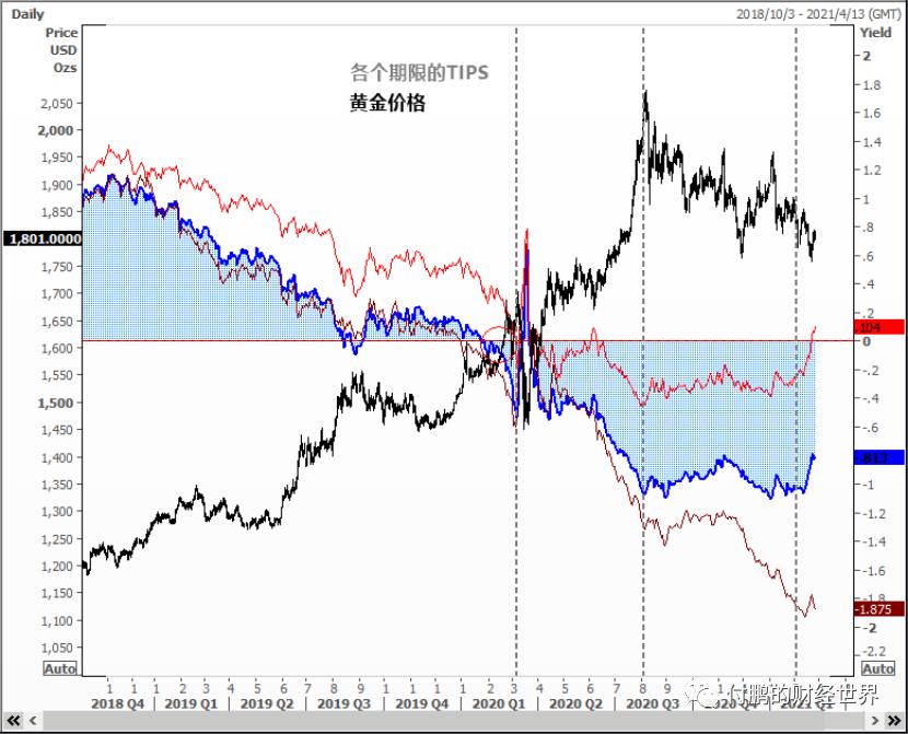图:黄金和各个期限的实际利率关系