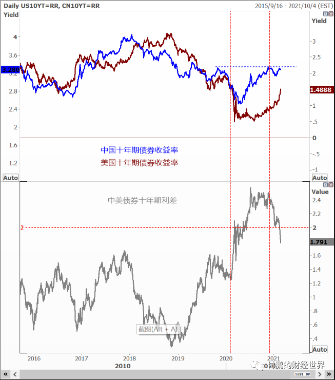 图:中美利差的收窄是个重要的错配节奏的反应